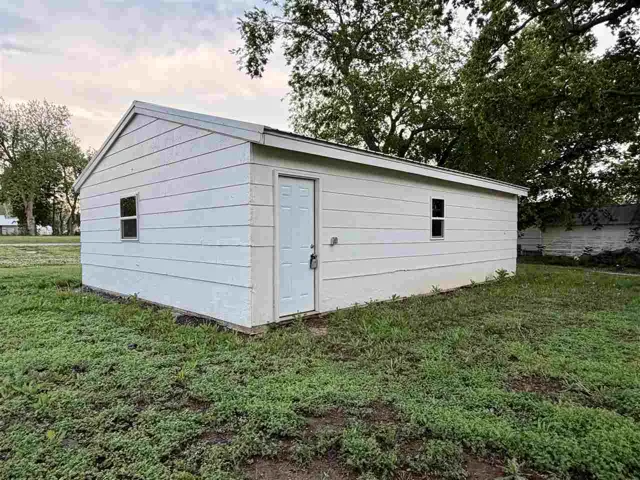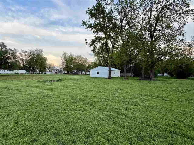 3.5 lots on the corner with a few trees and Garage/shop. Garage has a 2 year old steel roof with foam board insulation. It also has new exterior paint. The overhead doors are about 4 years old. There is a storm shelter inside. The entrance door to the garage is new as well as the 2 vinyl dual pane windows. There is an electric pole and meter close by. The garage is already wired for lighting and electrical boxes. There is a small panel already installed. This is a great place to build your next home.