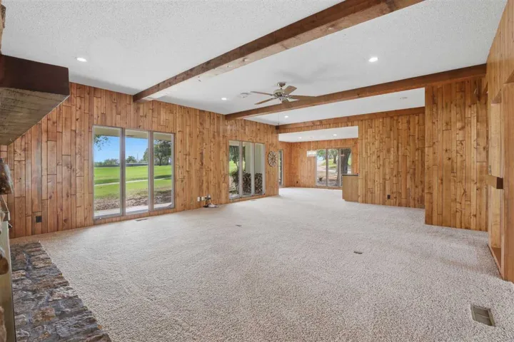 Stunning golf course property perfectly situated on Hole 12, offering incredible views and the convenience of golf cart access and driving throughout the neighborhood and course area. This spacious 4-bedroom, 4-bathroom home boasts 3,713 square feet of thoughtfully designed living space, giving everyone room to spread out and enjoy. Recent updates include a durable metal roof, fresh exterior paint, new flooring in the primary suite, and a 2-zone AC system for year-round comfort and efficiency. Step outside to your own private oasis with an in-ground pool, perfect for relaxing summer days or entertaining family and friends. This is a rare opportunity to enjoy the golf course lifestyle with the freedom to hop in your golf cart and head out for an evening ride or a quick trip to the course.