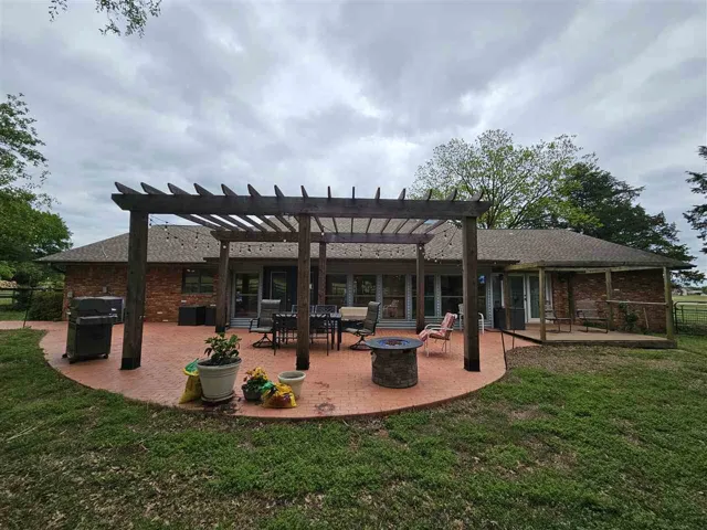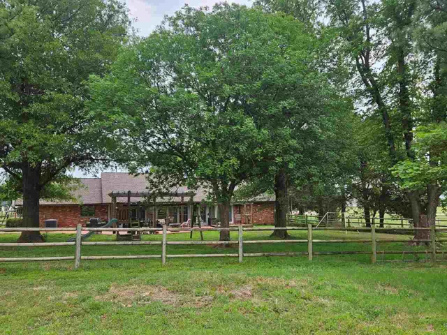 WELCOME to this well-maintained 4 bedroom, 2.5 bath on almost 5 acres, with a 30×60 shop, a seasonal pond, wood, round rail fencing & a storm shelter too! Many custom built features including wood ceilings in both living areas & master bedroom, Andersen windows & a fully paved driveway! Enjoy all the windows, light & mature trees (4 pecan & maple) as you prepare meals in this totally remodeled kitchen or from relaxing in both living areas. Master bedroom is HUGE and features a see-through fireplace from the living area, his and hers dressing areas with vanities & access to the wonderful patio with an awesome pergola. The 4th bedroom is currently being used as an office, it is small, but with a few changes, it could be enlarged & have its own 1/2 bath. The 12×24 shed has its own power source & is great for extra storage, then there is the 30×60 shop with 1/2 bath (plumbed for shower) with 220 power & built-in air line. Don’t miss your chance to own this little piece of paradise & bring your livestock too!