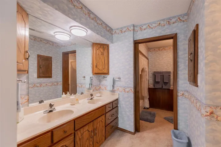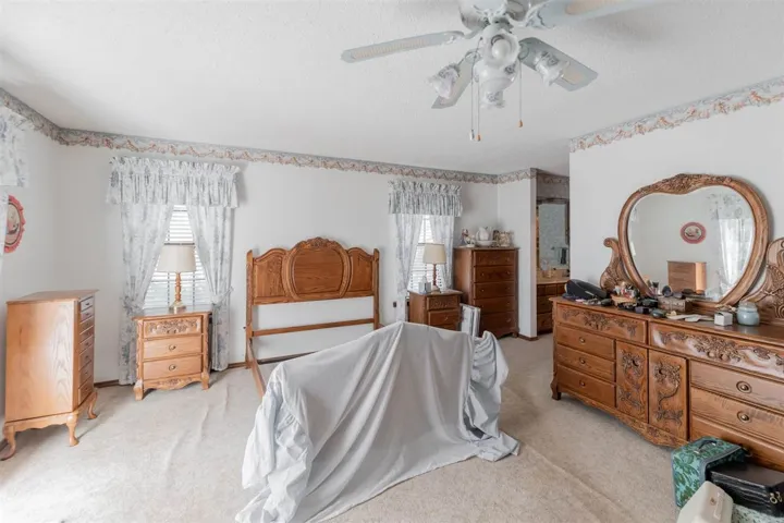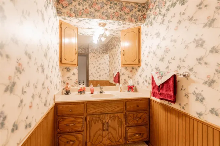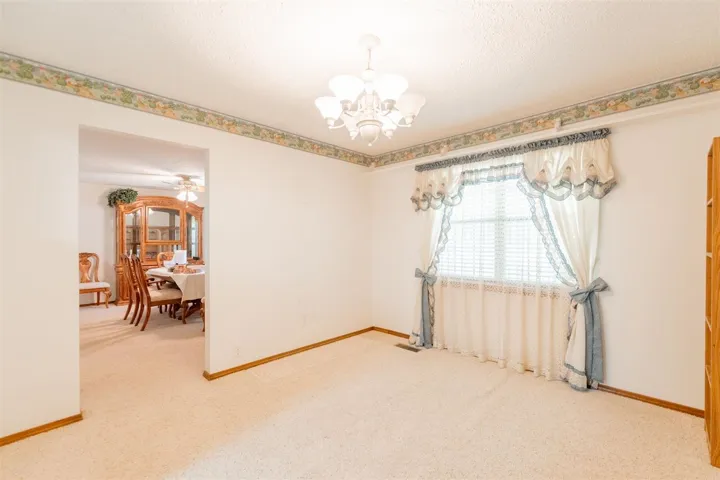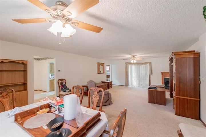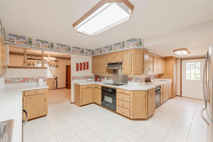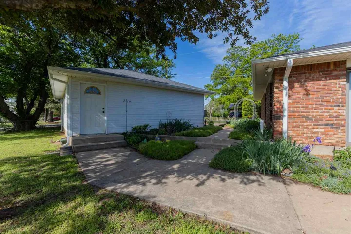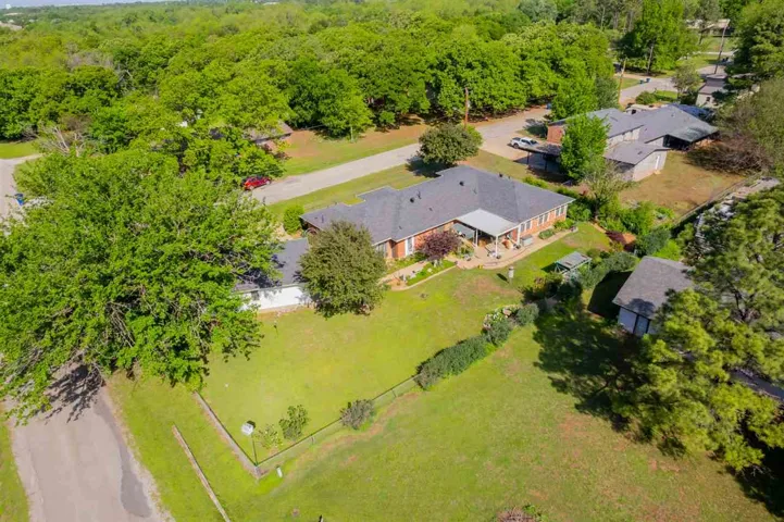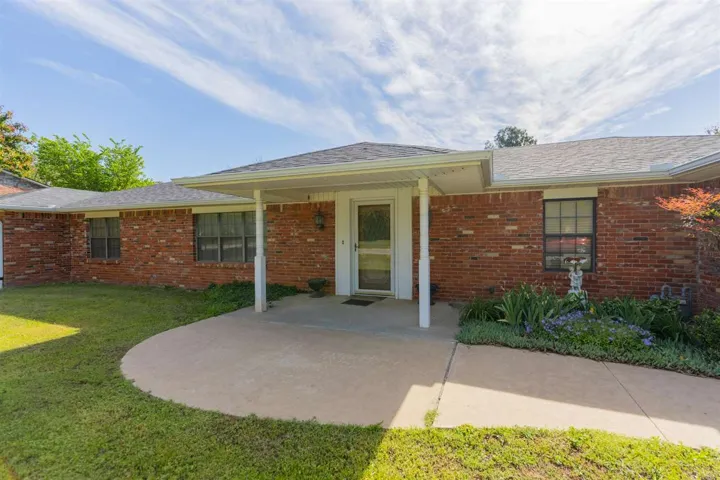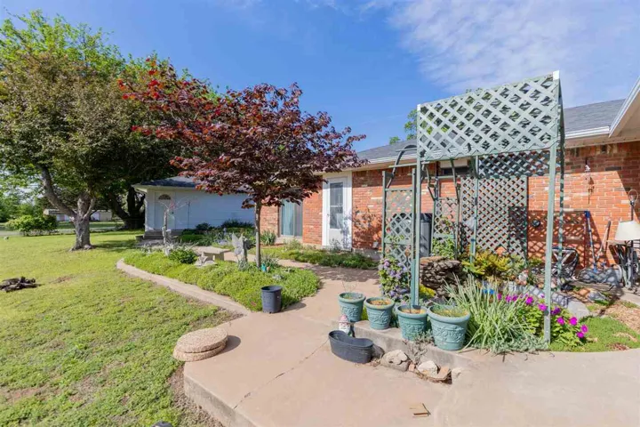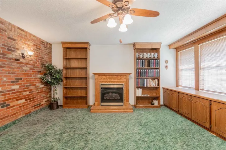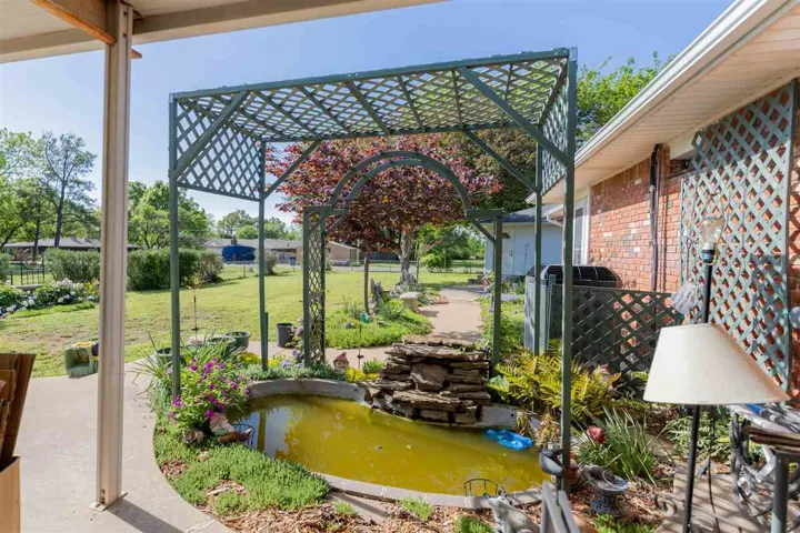 This well-loved, all-brick ranch home offers an impressive 2,965 square feet of single-story living on a beautifully landscaped 0.35-acre lot. With 3 bedrooms, 2 bathrooms, and a layout that just keeps going, this home has space for every stage of life. From the curb, the covered front entry and manicured landscaping make a welcoming first impression. Step inside to a generously sized combined living and dining area anchored by a warm gas fireplace with a classic wood mantel – the kind of space that feels equally at home hosting Sunday dinners or quiet evenings in. The room flows easily and is filled with natural light from large windows overlooking the yard. The kitchen is a true entertainer’s dream – truly oversized with an abundance of oak cabinetry, double ovens, and expansive counter space that makes meal prep and hosting a breeze. A center island cooktop, stainless dishwasher, and a separate back hallway lined with additional cabinetry and pantry storage complete the package. A pass-through window connects the kitchen to the living area, keeping the cook part of the conversation. The large separate family room adds incredible versatility – featuring a second gas fireplace flanked by built-in bookshelves, an exposed brick accent wall, and its own ceiling fan. Whether you need a cozy den, home office, or hobby space, this room delivers both character and function. The dedicated laundry room includes upper cabinetry. Out back, the covered patio opens to a truly special backyard retreat complete with mature trees, lush garden beds, a charming pergola, and a whimsical fairy garden – a labor of love that makes this outdoor space one of a kind. A separate water well dedicated to outdoor irrigation keeps the grounds lush without running up the water bill. A detached two-car garage provides additional storage and parking. Solid brick construction, a fenced yard, and a floorplan that offers far more space than most homes in this price range making this a rare and compelling find.