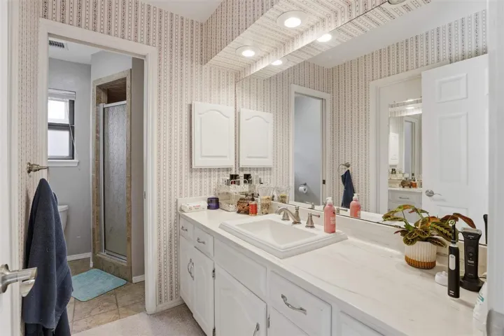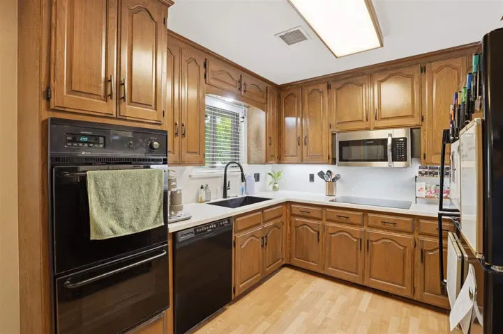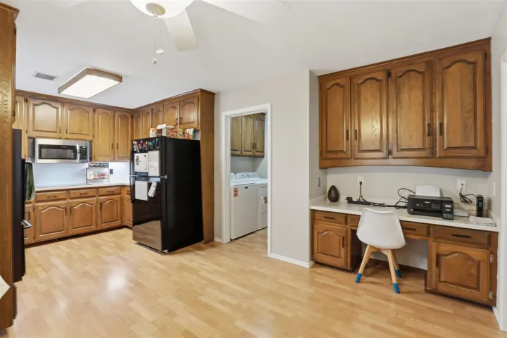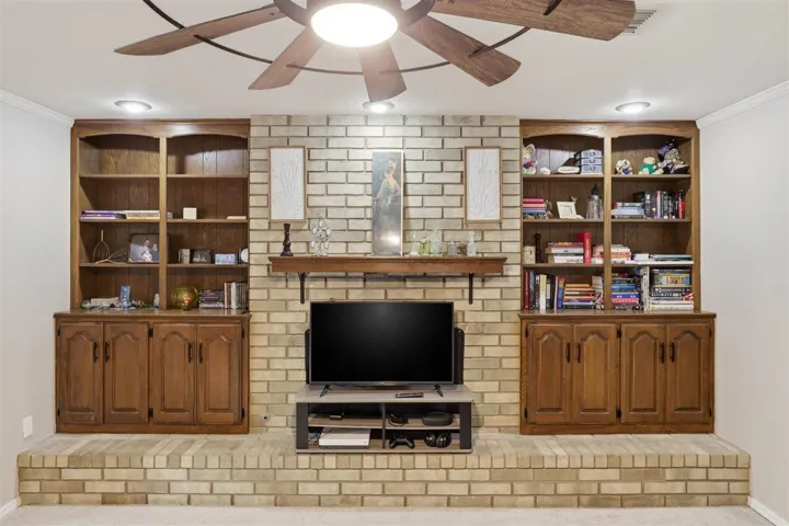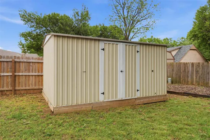 Beautiful curb appeal in a highly desirable neighborhood! This sought-after 4-bedroom, 2-bath home offers a spacious living area with a cozy fireplace and built-in bookcases. A flexible secondary living space is perfect for a home office, formal living, or workout room. The kitchen showcases abundant cabinetry with generous storage, paired with double ovens and an updated cooktop for a refined cooking experience. An inviting dining area sits just off the kitchen for effortless entertaining, while a built-in workspace adds stylish everyday functionality. The primary suite features an en-suite bath and private access to a personal patio wired for a hot tub—your own private retreat. The large, privacy-fenced backyard is the true showstopper, with expansive covered patio, perfect for entertaining, relaxing, and summer BBQs. Bonus storage shed included! With a 2-car garage, extra 3rd car parking space, this home truly has it all!