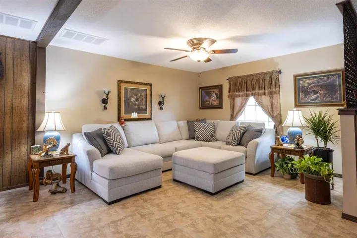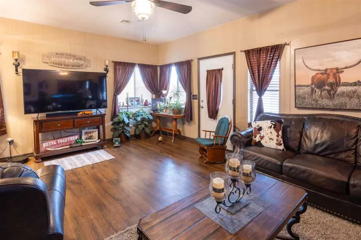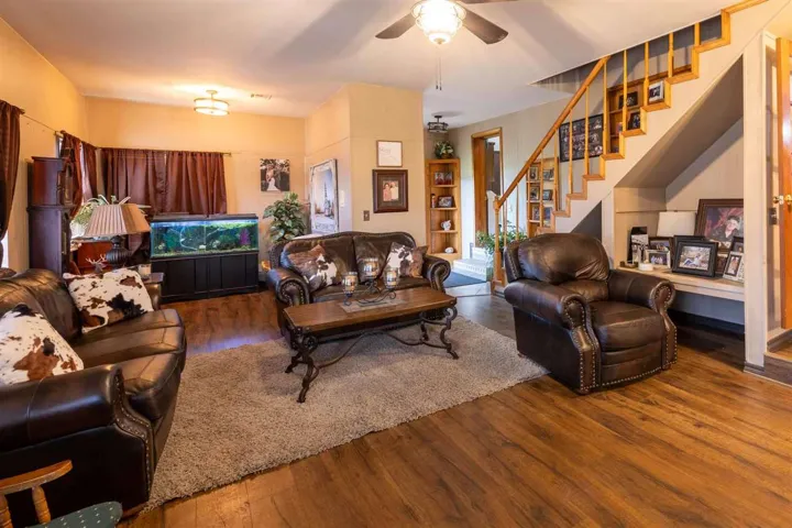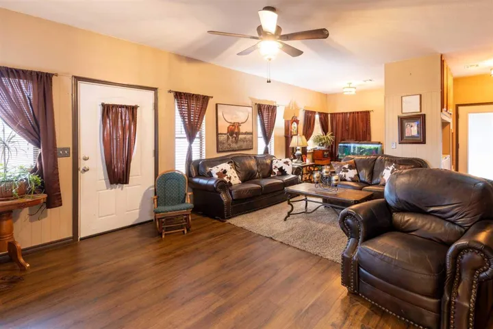 BEAUTIFUL AND READY FOR YOUR FAMILY!! You will have plenty of space to grow in this warm inviting brick home with 2853 square feet. Enjoy the 5 bedroom, 3 bath home with two large living area and a spacious kitchen with a oversized pantry. The living room includes dining area off kitchen, making it perfect for entertaining. The den is cozy and warm with wood floors with a stair case leading to a large bedroom, full walk in closet and laundry chute. 4 bedroom downstairs including the master bedroom, full bath w/shower and walk in closet. Two more bedrooms with a full bath, tub/shower combination conventionally located between them. The 5th bedroom/office has a outside door entrance great for business or office area, with built in desk, storage and a closet. Hallway has the perfect place for your freezer and utility room with cabinets and storage. The home is on 5.5 original Morrison town lots, privacy fenced back yard with fire pit, chicken coop and barn/ feed room. Colorful chickens and geese can stay or be removed. Circle drive has covered parking plus second attached double carport with storage room. Enjoy the lovely landscaping around the home and RV hook up south side of the carport. There is a covered patio on back porch and covered patio off the den. Call for more information and to view this home. Must have confirmed appointment, 24 hour notice. Slab in back yard is for hot tub and all hook ups available. Childs play ground equipment is located on the lot to the south of home that is not owned by seller.