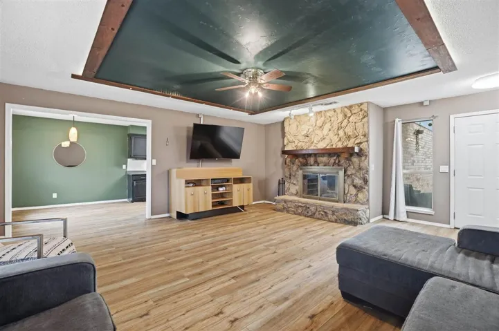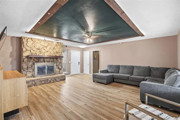 Great SW Neighborhood!!! This nice 3 bedroom 2 bathroom home sits on a large lot that is located in a cul-de-sac. When stepping through the front door you will appreciate the good size living room with a rock fireplace with mantle and large windows. You have a somewhat open concept to the dining room and move around to the kitchen area. The kitchen is a nice size with plenty of counter space and storage. All bedrooms are located off the same hallway as well as the main bathroom. The primary bedroom is spacious, large windows and access to the primary bathroom. You will enjoy the large backyard for entertaining family or having room for children and/or pets to play since the backyard has a private fence and a covered patio. The yard has recently been “harley raked” to aerate and loosen the soils. The grass will come back greener, thicker and healthier in the coming weeks. This is definitely an affordable property in a desirable location. Schedule your appointment to view this home soon!