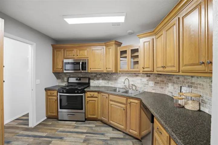 Adorable and move-in ready, this 3 bedroom, 2 bath home offers comfort and thoughtful updates throughout. The kitchen blends everyday functionality with stylish appeal while offering ample workspace, stainless appliances and brick-look backsplash that adds character. The large dining area flows nicely into the kitchen and a generously sized family room with a fireplace, creating a warm and inviting space for everyday living and entertaining. The spacious primary suite features a private ensuite bathroom and a large walk-in closet, providing a comfortable space. Step outside to a fenced backyard with a fire pit—perfect for relaxing or gathering with friends. Recent improvements include new flooring in the kitchen and family room, updated bathroom flooring and fresh exterior paint. Roof and back patio door replaced in fall of 2025. Conveniently located near shopping, dining, and just a short drive to Oklahoma State University, this home offers charm, function, and a great location.